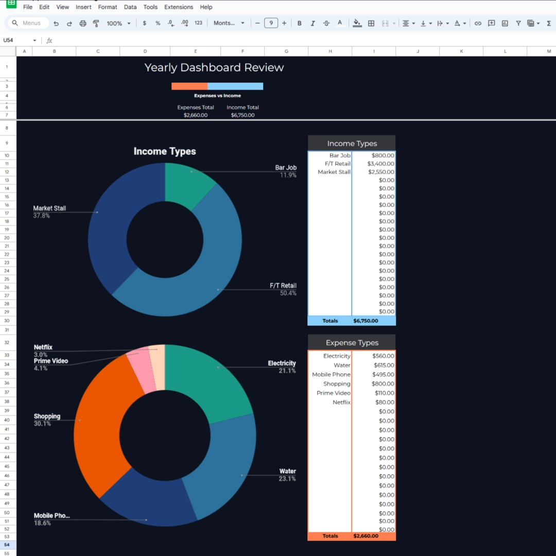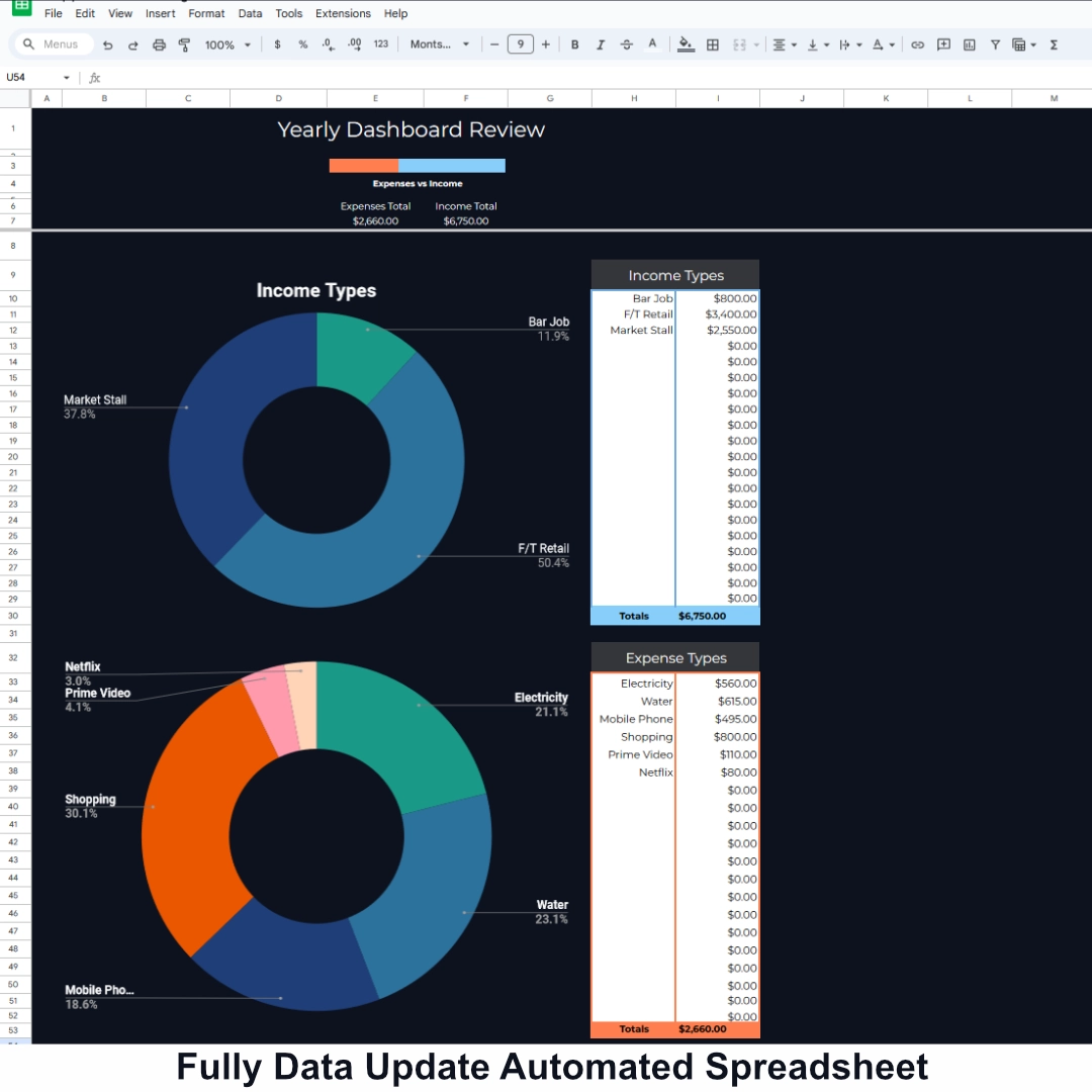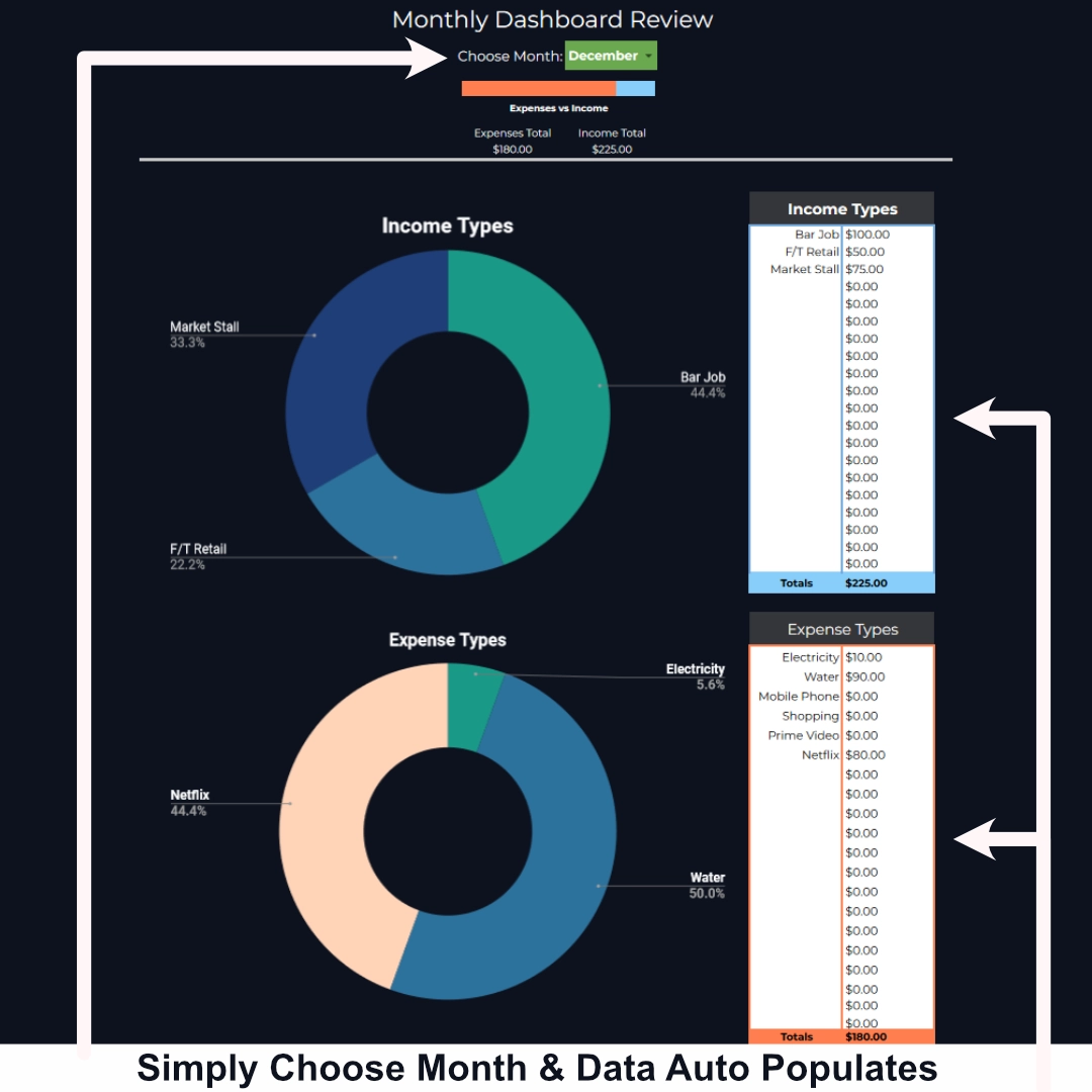 • Separate data entry worksheets for your Income and Expenses. This is the only data you need to add.