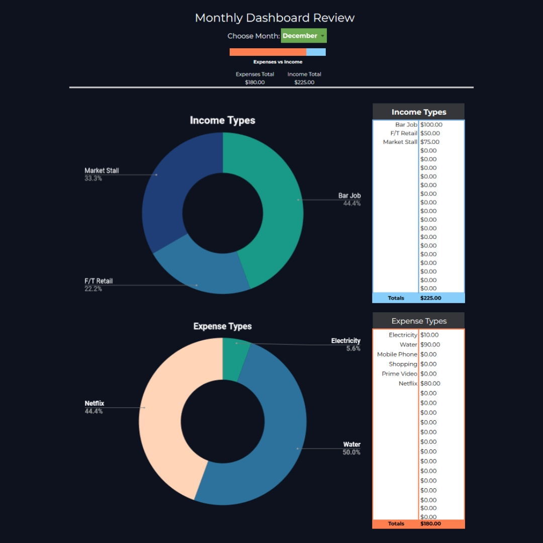 • Easy to setup. Just add the income and expense types via the settings tab and you are good to go.